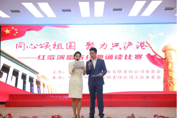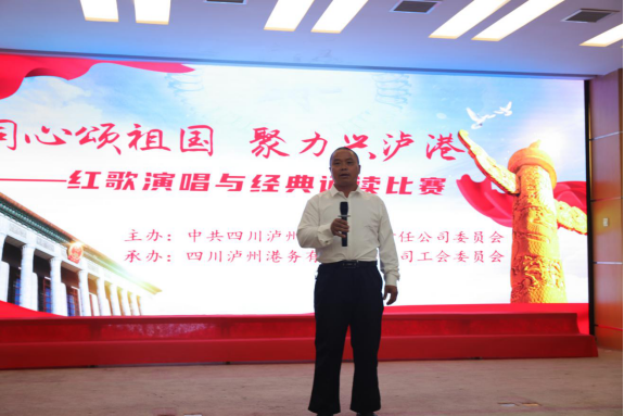 ? ? ? “紅歌演唱與經(jīng)典誦讀比賽”在大合唱中華人民共和國國歌《義勇軍進(jìn)行曲》中拉開帷幕,來自瀘州港務(wù)公司和駐港船公司混編的“團(tuán)結(jié)隊(duì)”“興港隊(duì)”“遠(yuǎn)洋隊(duì)”“飛浪隊(duì)”“紅星隊(duì)”5支隊(duì)伍,獻(xiàn)出了《我驕傲,我是中國人》等經(jīng)典誦讀和《懷揣感恩之心,共創(chuàng)瀘州港美好明天》等精彩演講,表達(dá)了對黨、對祖國、對港口真誠祝愿和無限祈福,經(jīng)過誦讀、演講兩個環(huán)節(jié)的角逐、比拼,評選出了優(yōu)秀名次。各參賽隊(duì)員聲音嘹亮,精神飽滿,展示了蓬勃向上、團(tuán)結(jié)奮進(jìn)的精神風(fēng)貌,贏得了現(xiàn)場領(lǐng)導(dǎo)、嘉賓及評委的一致好評。在誦讀和演講比賽兩個環(huán)節(jié)之間,活動穿插了文藝節(jié)目,口技、薩克斯獨(dú)奏、獨(dú)唱、大合唱等多種形式的文藝節(jié)目同臺競技,博得觀眾陣陣掌聲?!段业淖鎳贰陡璩鎳贰洞笾袊返纫皇资浊?,表達(dá)了全體瀘港人對祖國、對家鄉(xiāng)、對港口的無限熱愛之情和英雄主義氣概。