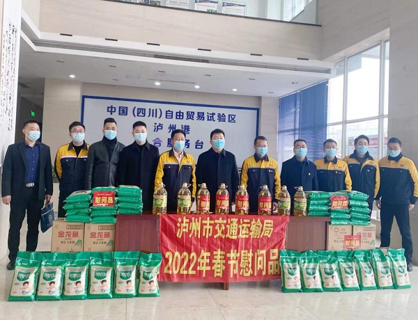 ? ? ? ?1月18日,瀘州市交通局局長朱江一行蒞臨瀘州港務(wù)公司開展冬季“送溫暖”慰問活動。朱局長代表市交通局向一線員工送上親切的新年祝福,向不畏嚴(yán)寒、堅守一線的員工致以最深的敬意,將市交通局黨委的關(guān)心和工會的溫暖及時送到一線職工手中。