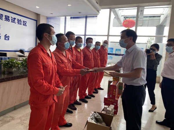 ? ? ? 為做好安全生產(chǎn)和夏季防暑降溫工作,保證職工安全度夏,8月13日,省港投集團(tuán)公司副總經(jīng)理阮昌益一行到瀘州港務(wù)公司開展夏季“送清涼”慰問活動(dòng),及時(shí)為一線職工送上集團(tuán)的關(guān)懷。
